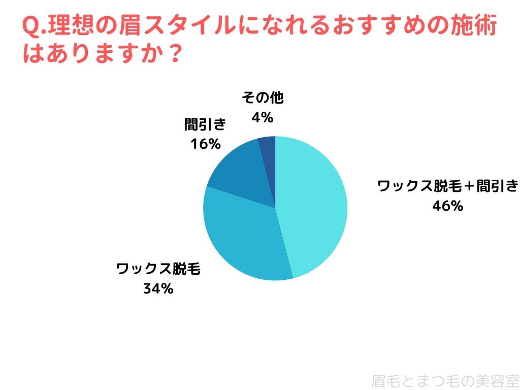 理想の眉スタイルになるには「ワックス脱毛+間引き(46%)」がおすすめ!どちらもやることでキレイな眉になりやすい