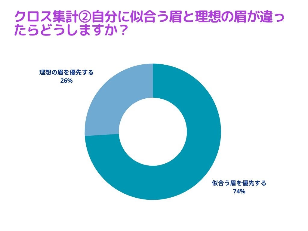 自分に似合う眉と理想の眉が違った場合は「似合う眉を優先する(74%)」、「理想の眉を優先する(26%)」という結果になりました。
