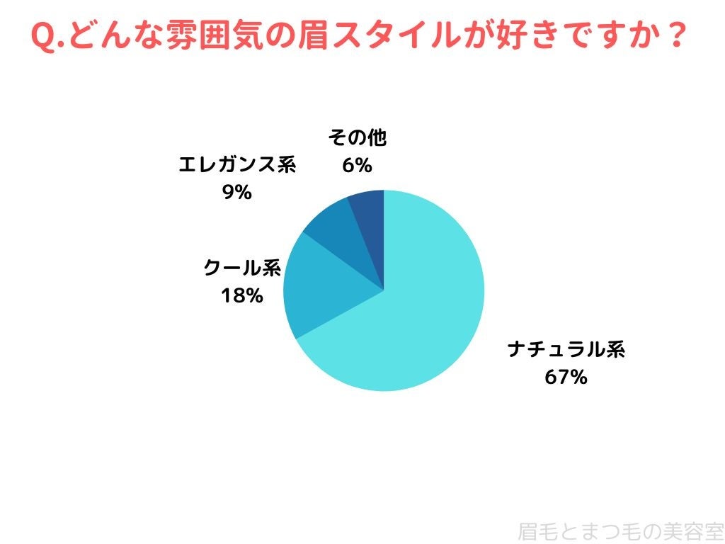 眉毛サロンの眉スタイルは「ナチュラル系(67%)」が大きな支持を得ている!色々な雰囲気と合わせやすいのが要因か