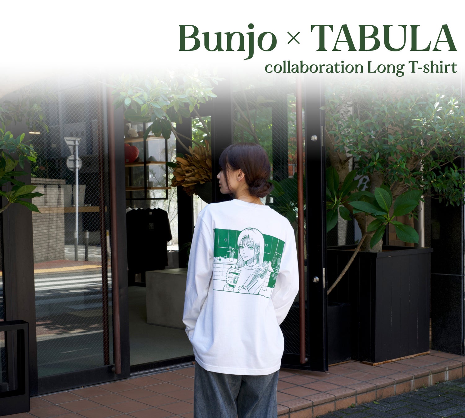 9月14日より、BunjoとTABULA COFFEE & FLOWER のコラボのロング袖Tシャツの販売を開始いたします。ロング袖のTシャツにTABULAの内装をモチーフに描かれた初公開のイラストをプリント。TABULAの人気商品「フラワーバッグ」には、今回のイベントのイメージカラーであるイエローとオレンジのお花が登場。また、ステッカーやポストカードなどその他グッズも販売しております。
