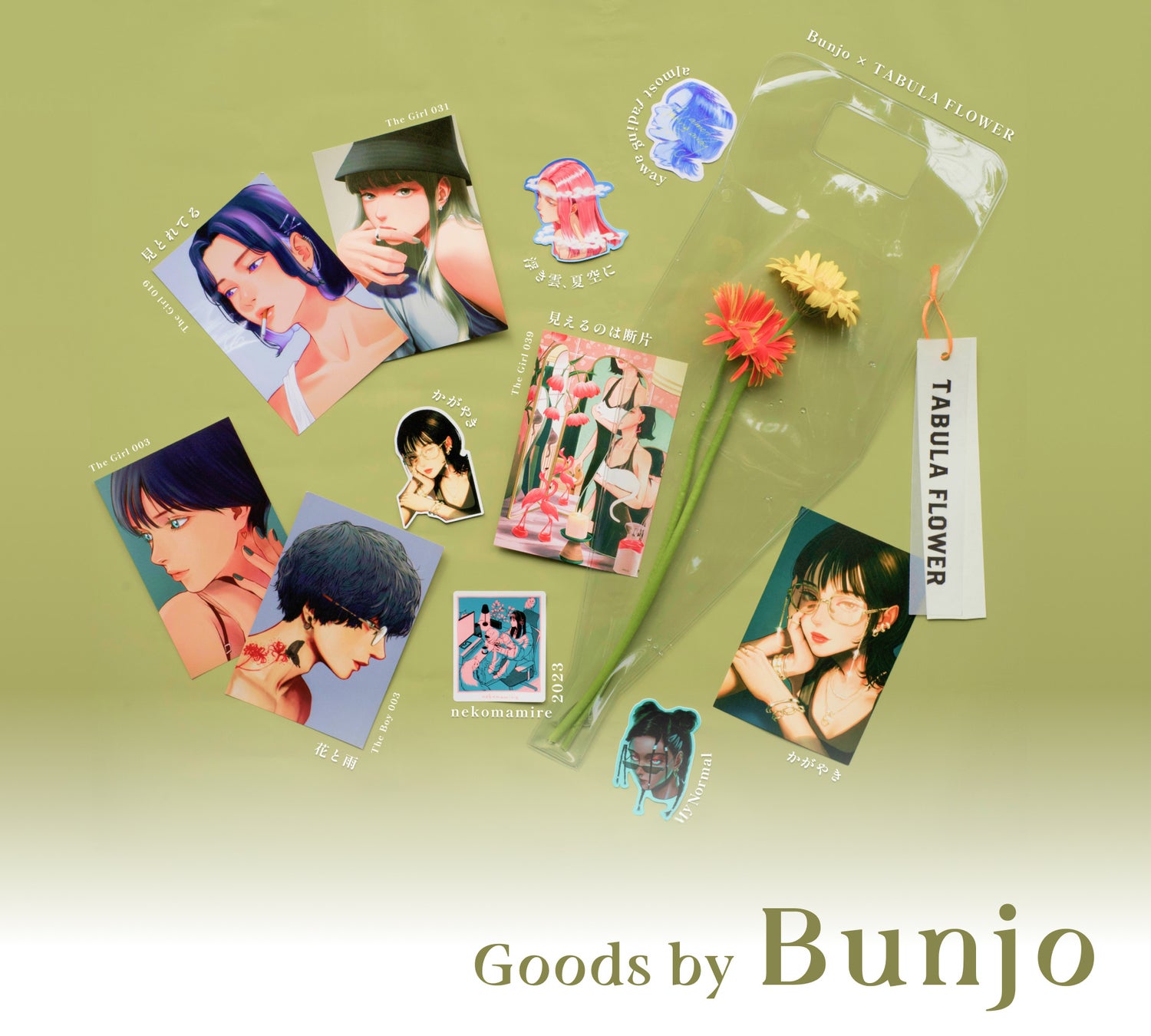 第一弾ではイラストレーターBunjoとコラボレートし、9月14日よりBunjoとTABULAとのコラボグッズや、コラボドリンクを提供します。Bunjoが過去に手がけたイラストやグッズも購入することができ、本イベントのために描き下ろした初公開のイラストの展示もいたします。また、9月21日から9月23日までの3日間はBunjoをTABULA COFFEE & FLOWERにお迎えし、12時から18時までライブペインティングを行います。