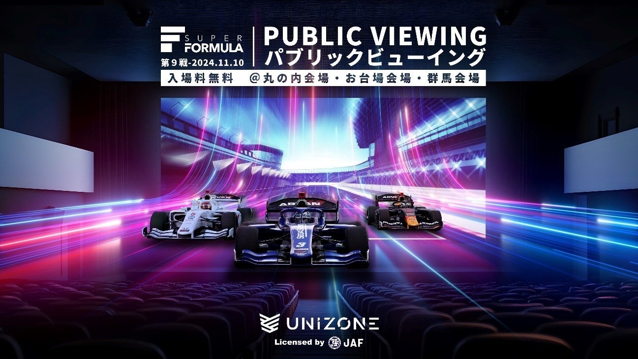 国内で唯一JAF(日本自動車連盟)の公認を受けたeモータースポーツ大会(レーシングゲームを使用したeスポーツ大会)「UNIZONE(ユニゾーン)」を運営する一般社団法人日本eモータースポーツ機構(東京都千代田区、代表理事:出井宏明、以下「JeMO」)は、多くの方にクルマの楽しさや魅力を知っていただくことを目的とした「グラスルーツ活動」の一環として、11月10日(日)に鈴鹿サーキットで開催される「SUPER FORMULA」最終戦である第9戦のパブリックビューイングイベントを丸の内・お台場・群馬の3会場で開催します。会場では、シミュレーター体験や来場者も参加できる各会場を繋いだ会場対抗レースも実施します。