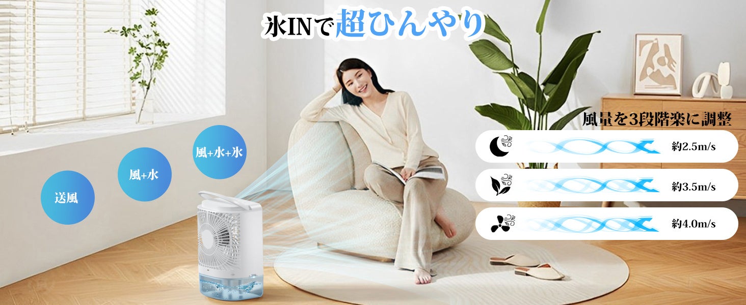 Lovaroi冷風扇は、水や氷を利用して空気を冷やす冷却機能を備えています。この機能により、室内の気温を効果的に下げ、快適な居住環境を提供します。