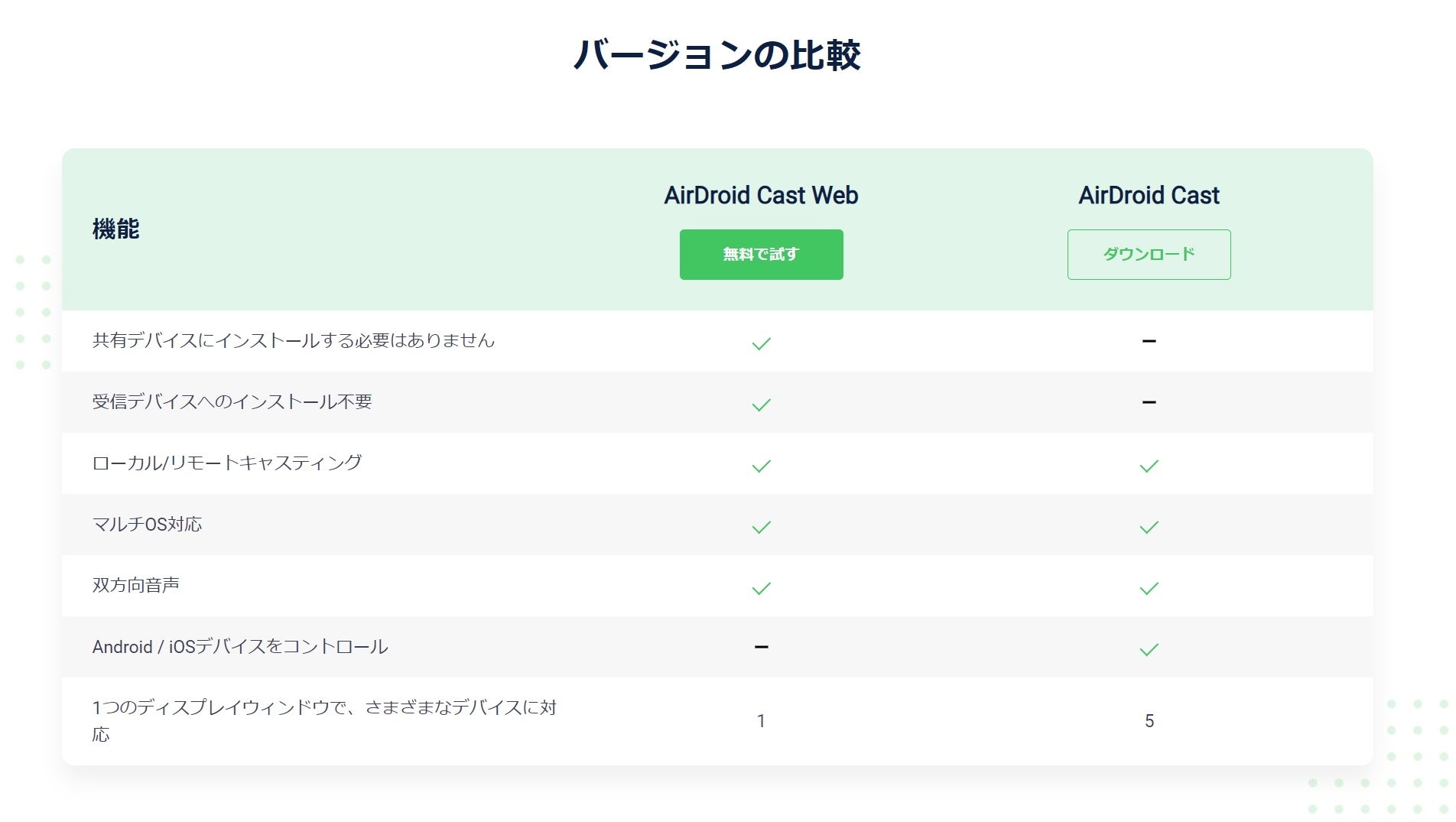 AirDroid Castが新機能、AirDroid Cast Webがリリースされました。トレーニング・プレゼンテーション・日常的なコミュニケーション・エンターテインメントを、あらゆるWebブラウザから、他のWebブラウザへ画面をキャスト(送ること)することができます。