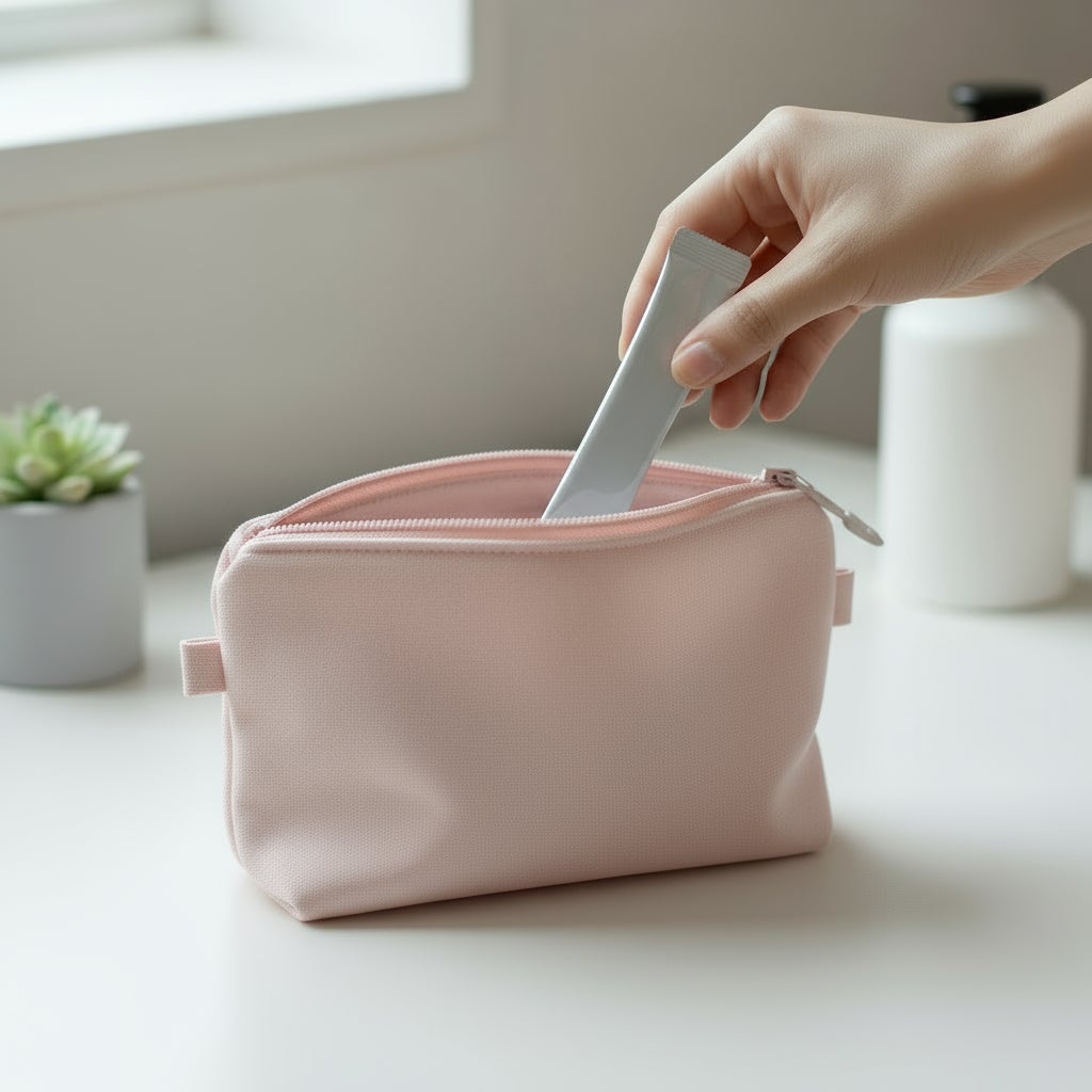 忙しい毎日や外出先でも、美肌習慣を途切れさせない。その想いから、場所を取らずスマートに持ち運べるスティックタイプの個包装を採用しました。
