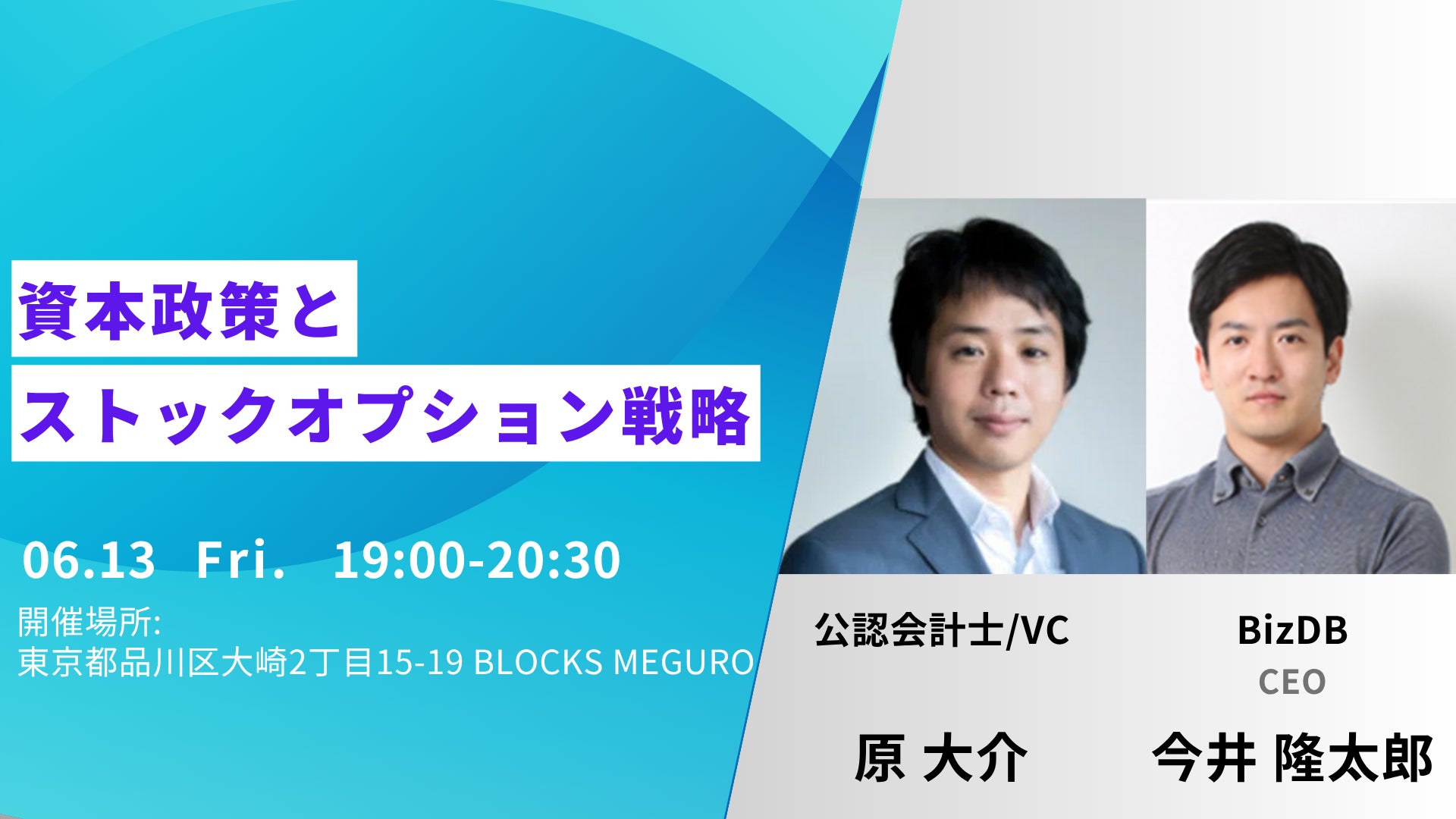 株式会社BizDB(本社:東京都新宿区、代表取締役:今井隆太郎、以下当社)は主にスタートアップ経営者向けに最適な資本政策の設計方法とストックオプションの方針を解説するセミナーを2025年6月13(金)19:00 - 20:30で開催いたします。