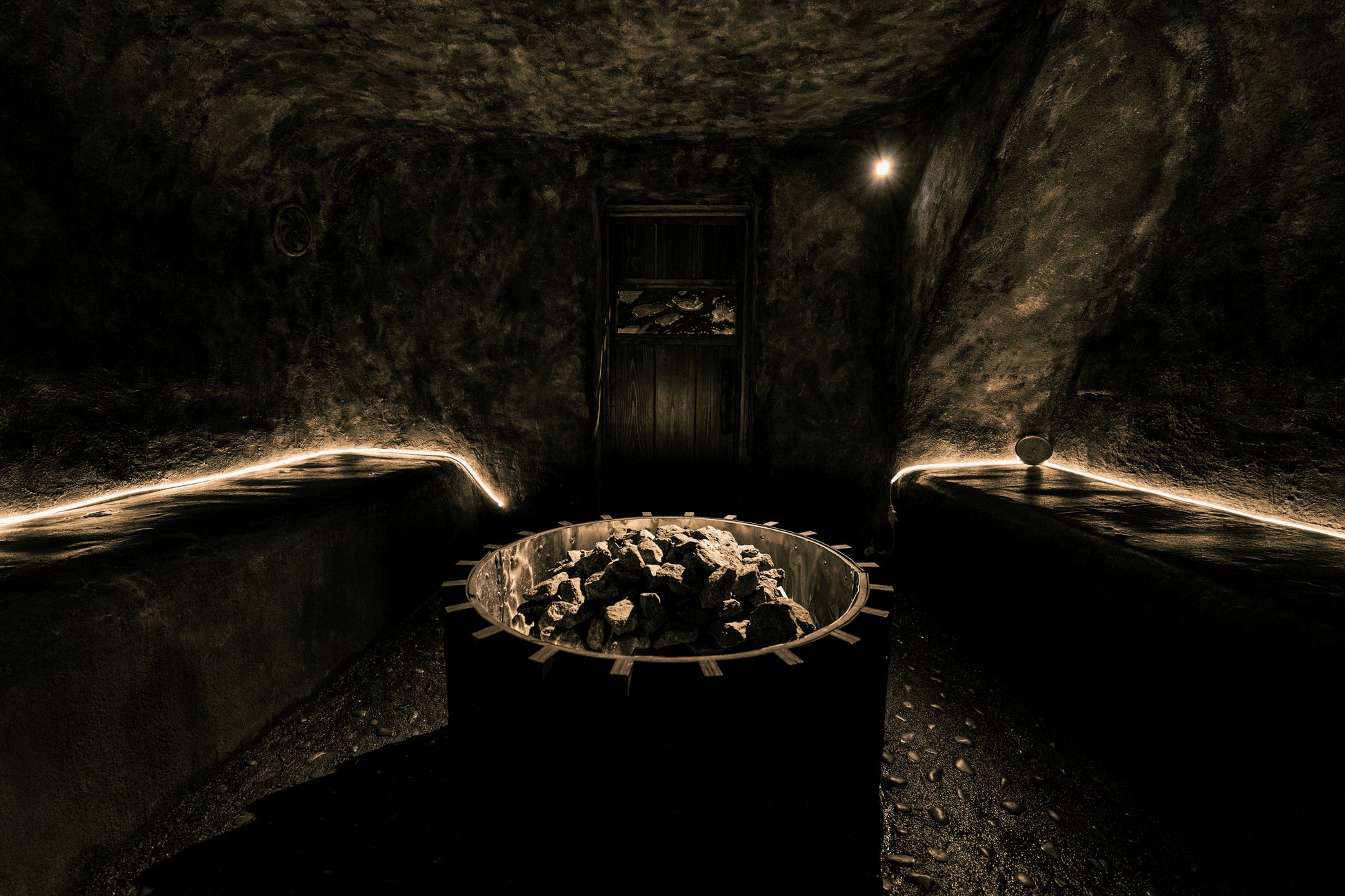 土は木よりも蓄熱性が高いので、サウナストーブからだけではなく、座面や壁面からも強い輻射熱を感じます。