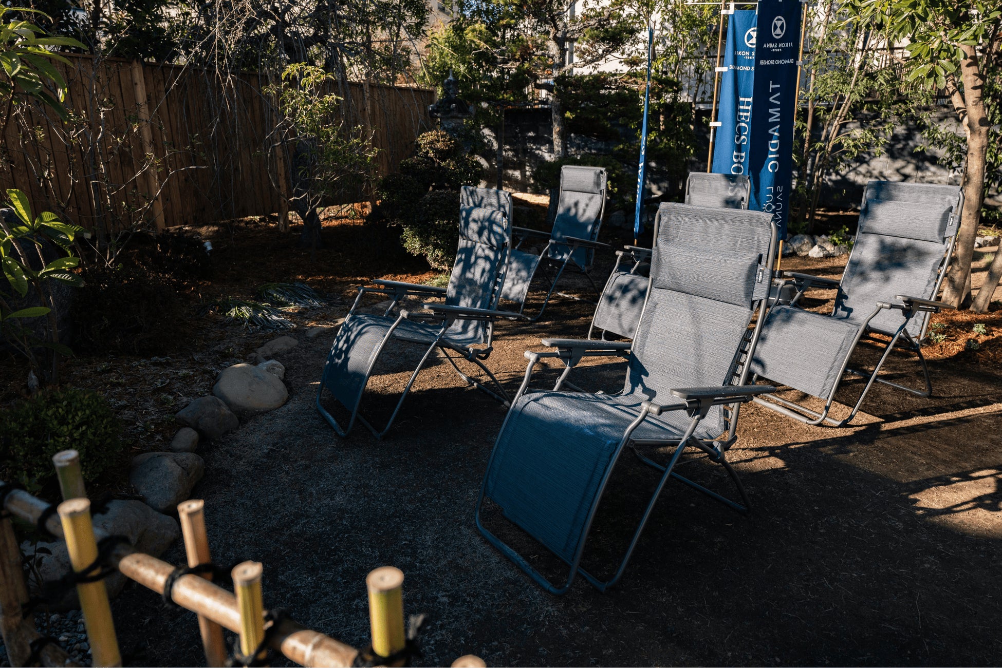 そして「Lafuma」のリクライニングチェアも完備。サウナ好きなら誰もが喜ぶ椅子の上で、日光を全身に浴びながら至福の時間を過ごすことができます。