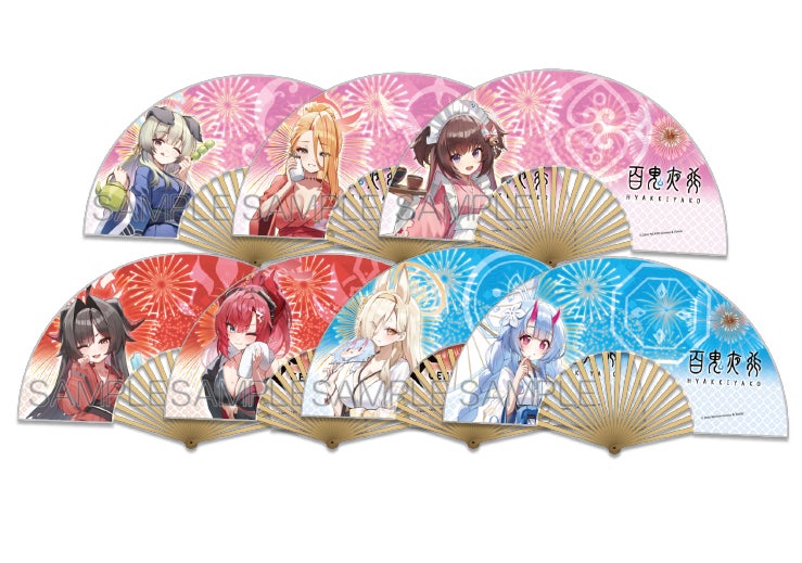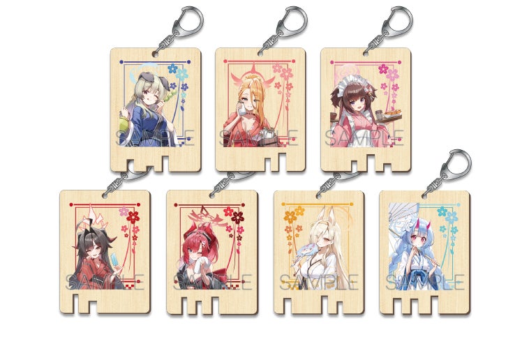 祭の湯コラボの描き下ろしイラストを使用した、扇子やトレーディング木札鍵風木製キーホルダー、