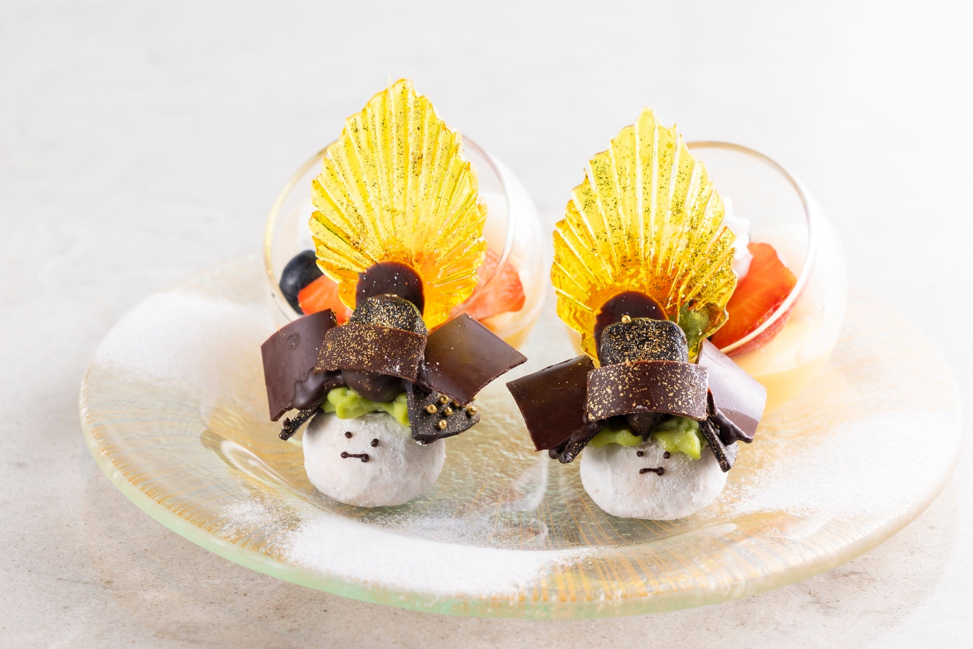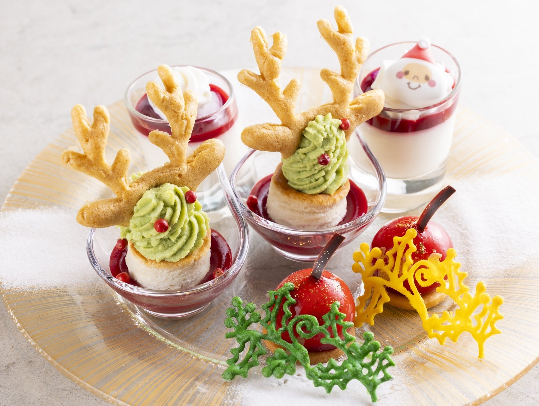 6階「ラウンジ&バー SEN(舟)」では、ご好評をいただいている「SENオリジナルアフタヌーンティー」がクリスマス・スペシャルバージョンで登場します。アイコニックな豊臣秀吉の兜をイメージしたケーキはそのままに、トナカイを模したスイーツやオーナメントのようなりんごのムース、色鮮やかなベリースコーンとマロンのクロワッサンなど、クリスマスをお祝いする見た目にも楽しいアフタヌーンティーです。期間限定でクリスマスリースをイメージした、あまおうパフェがつきます。