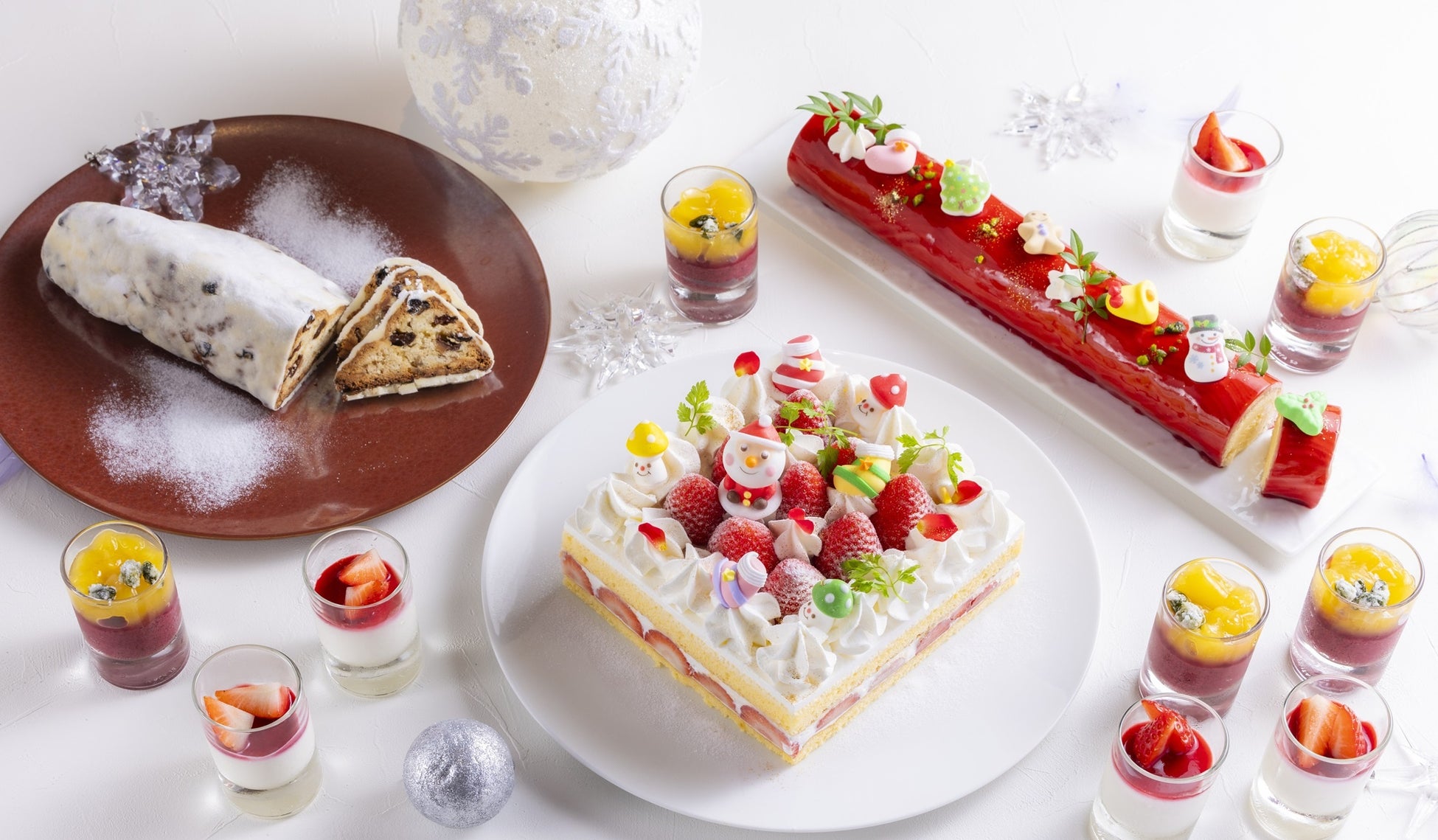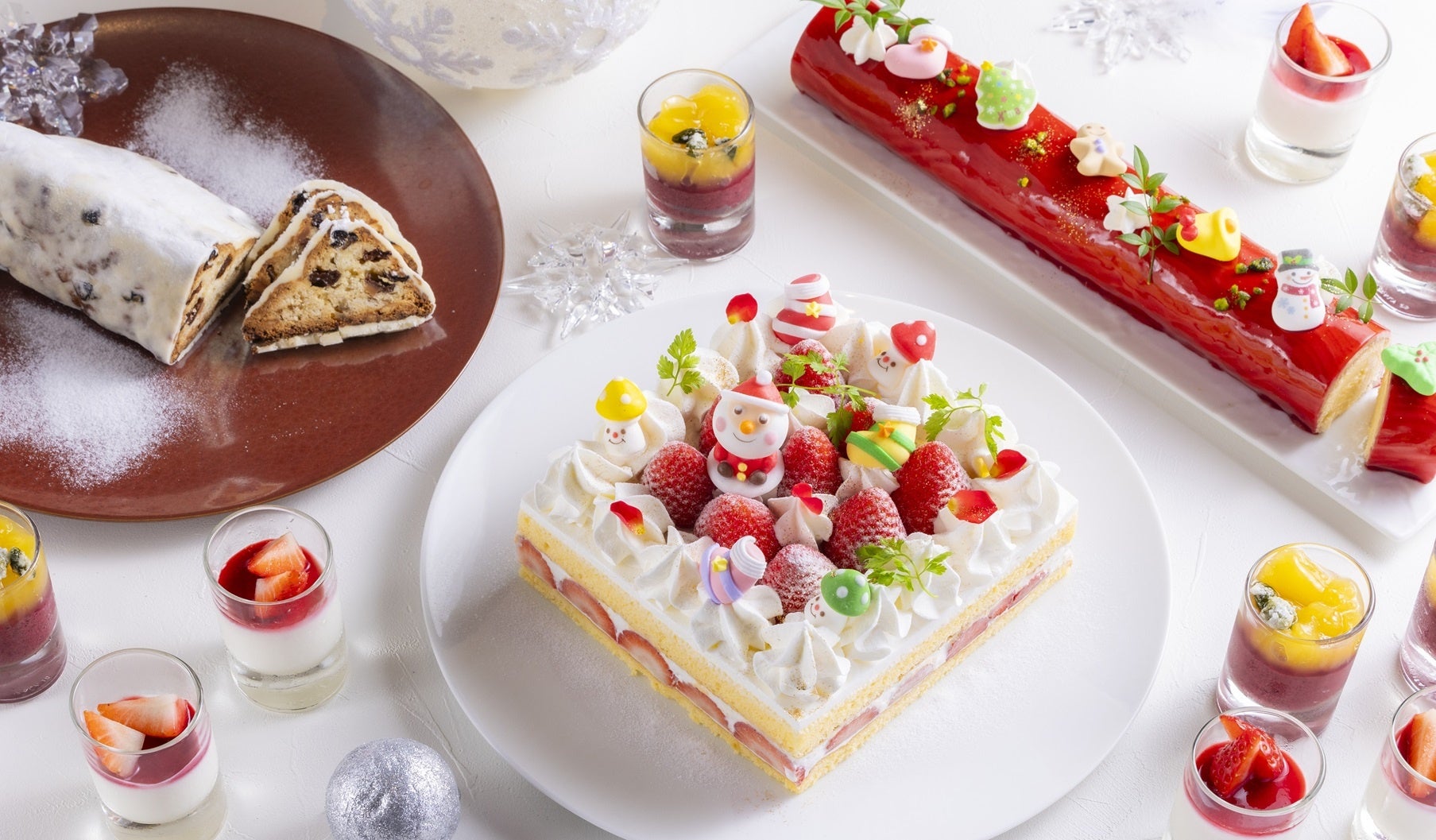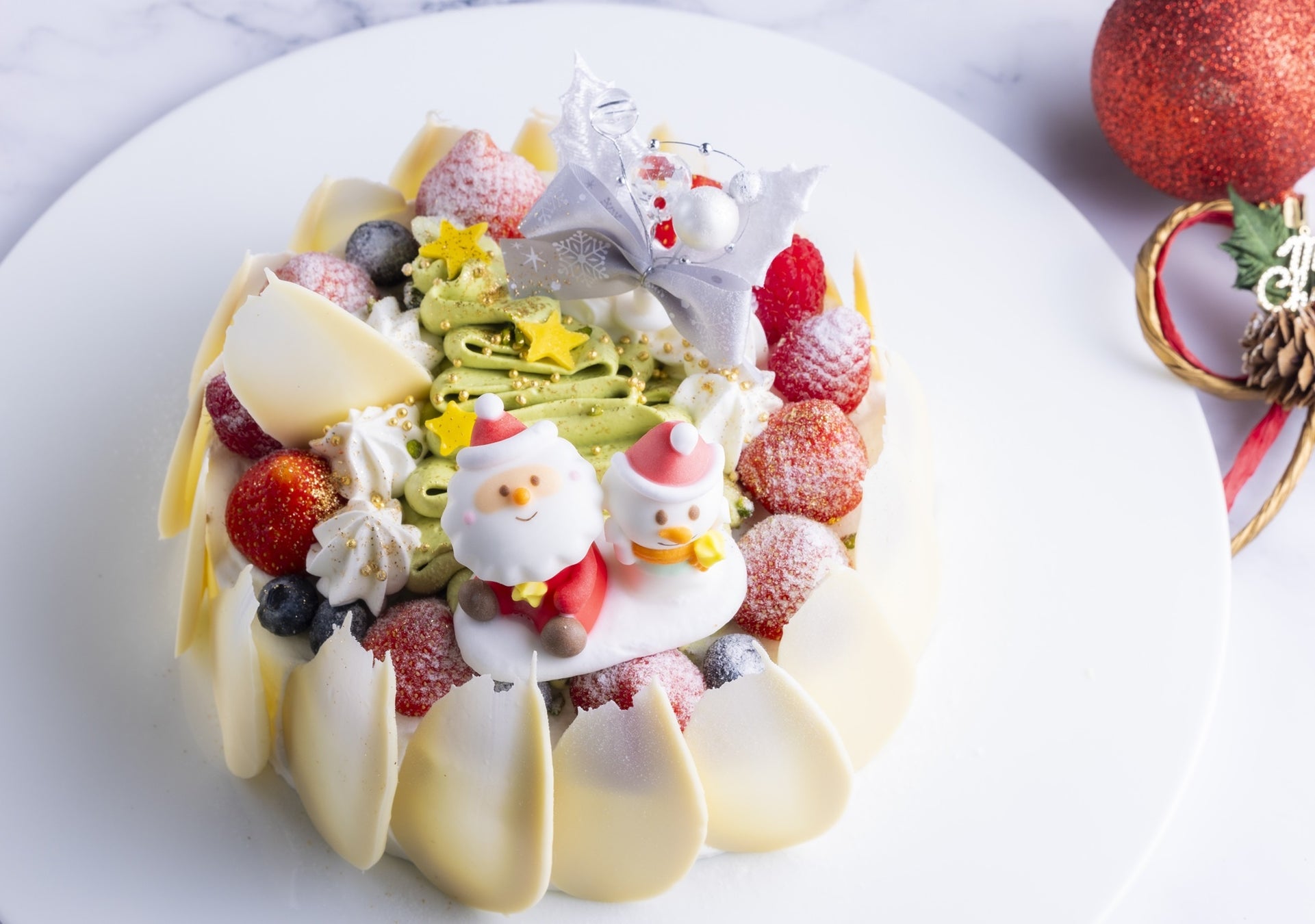 テイクアウトショップ「マーケット SEN(川)」では、数量限定でWeb予約可能なクリスマスケーキと店頭販売のシュトーレンをご用意いたしております。ペストリーシェフ山口こだわりのクリスマスツリーを表現したケーキは、ピスタチオクリームやいちごをふんだんに使い、華やかな印象。サンタや雪だるまの可愛らしいデコレーションが楽しめます。シュトーレンはラム酒のシロップで漬けたオレンジピール、レモンピール、レーズンなどのドライフルーツを使った大人な味わいです。