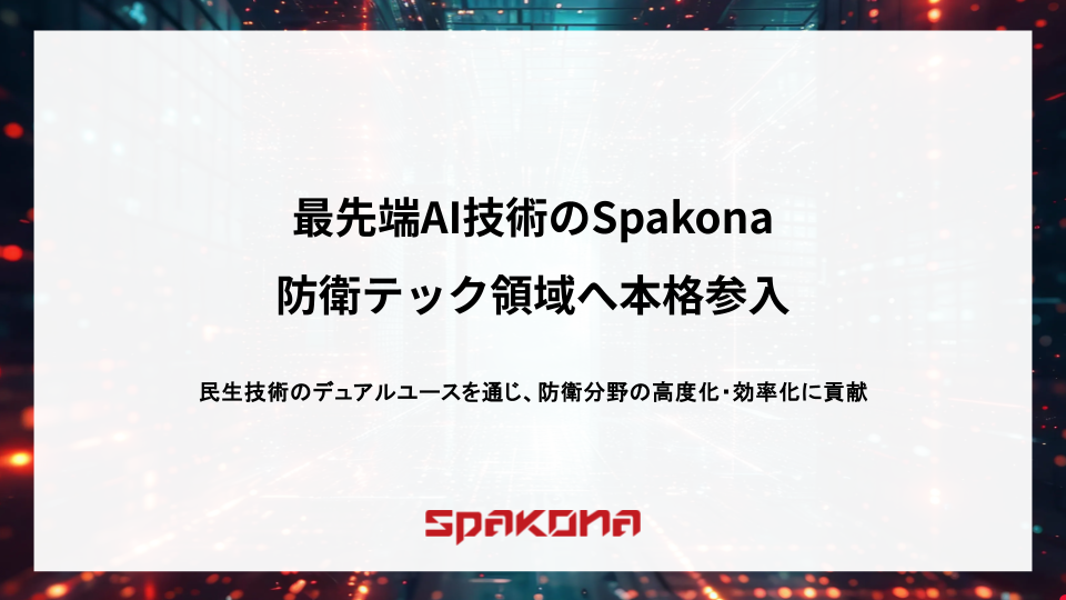 現在Spakonaは、防衛省や防衛装備庁との協業を通じ、防衛分野におけるAI技術の実証・研究開発を進めています。今後はこれらの取り組みを基盤とし、防衛分野におけるAI活用の対象領域や連携先をさらに拡大していく予定です。
