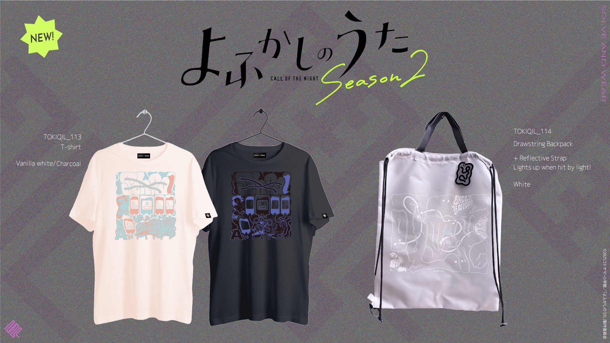 暗号専門アパレル「トキキル」、TVアニメ『よふかしのうた Season2』との限定コラボ商品を発売。深夜しかオープンしないオンラインアパレルショップで購入可能。