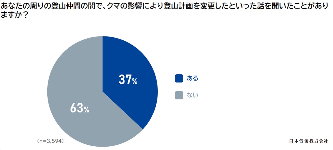 計画を変更した話を聞いたことがない方が大半でしたが、37%(約3人に1人)の方が「聞いたことがある」と回答しました。これは、クマの出没情報が登山者の間で注目の話題であり、実際の登山計画に影響が出ていることが分かりました。