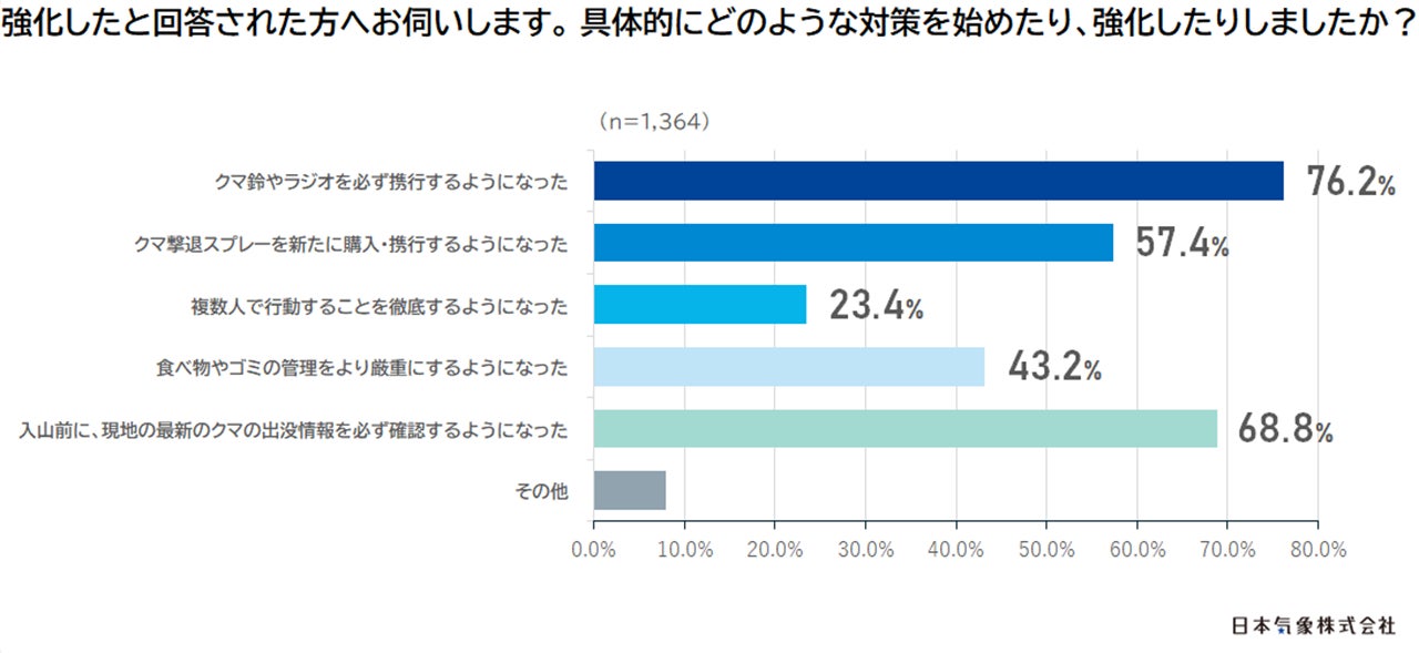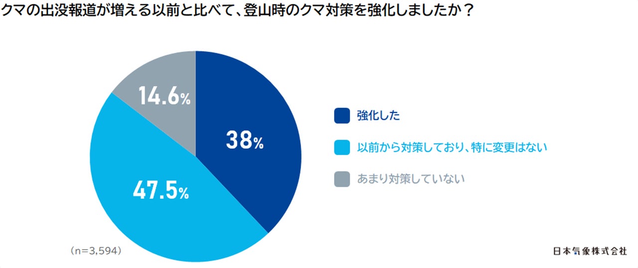 日本気象は、皆さまが安心して登山や生活を送ることができるよう、今回のアンケート結果を活かしたクマ対策や登山関連情報の提供や改善など、皆様の暮らしの安全・安心に努めてまいります。