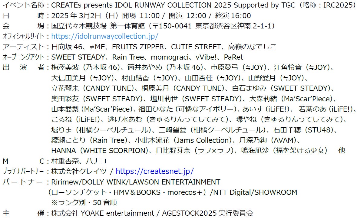 ■CREATEs presents IDOL RUNWAY COLLECTION 2025 Supported by TGC 開催概要