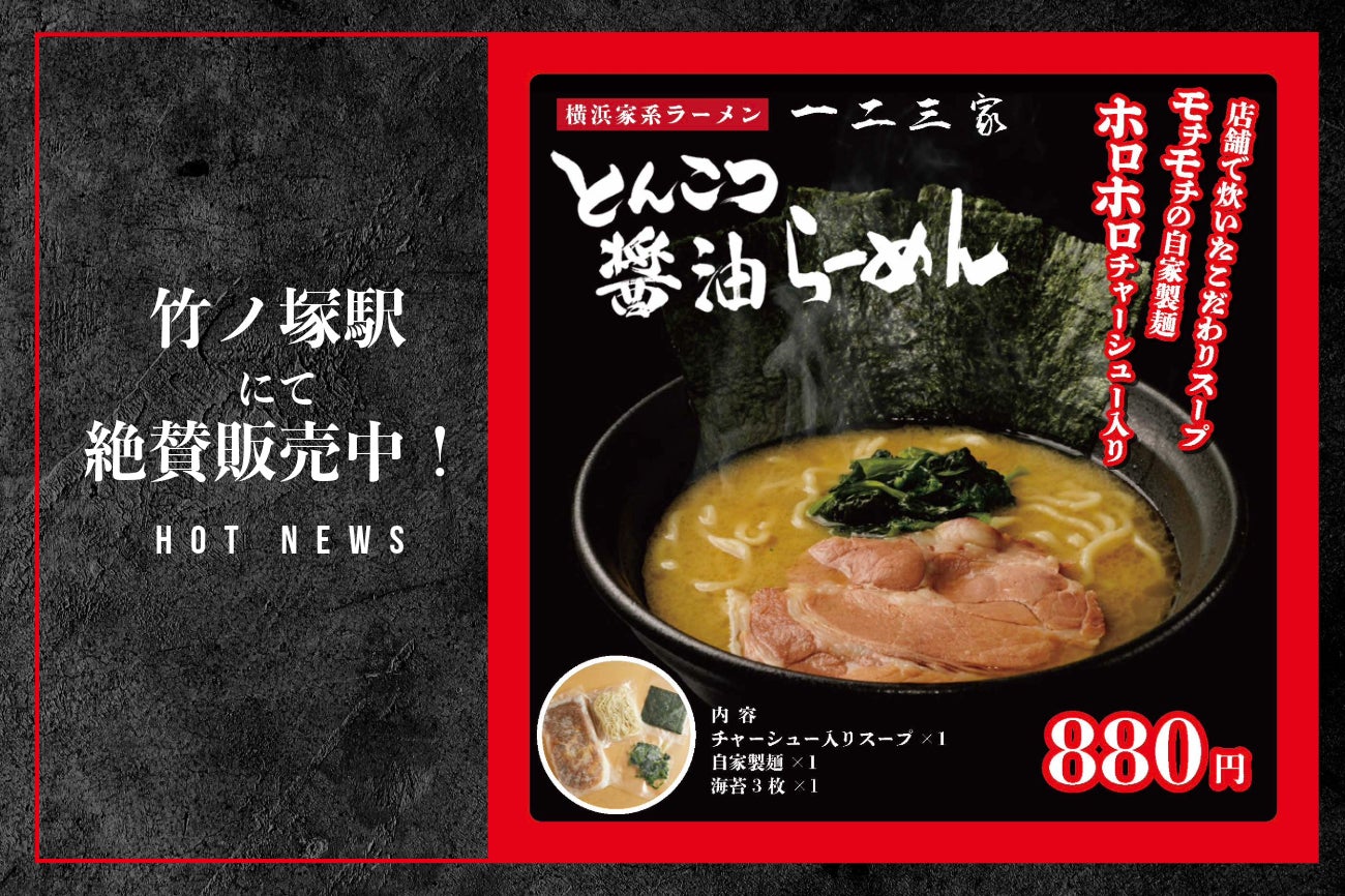 その中で注目すべき商品の一つ。竹ノ塚駅にて販売開始する『一二三家の横浜家系ラーメン』をご紹介!