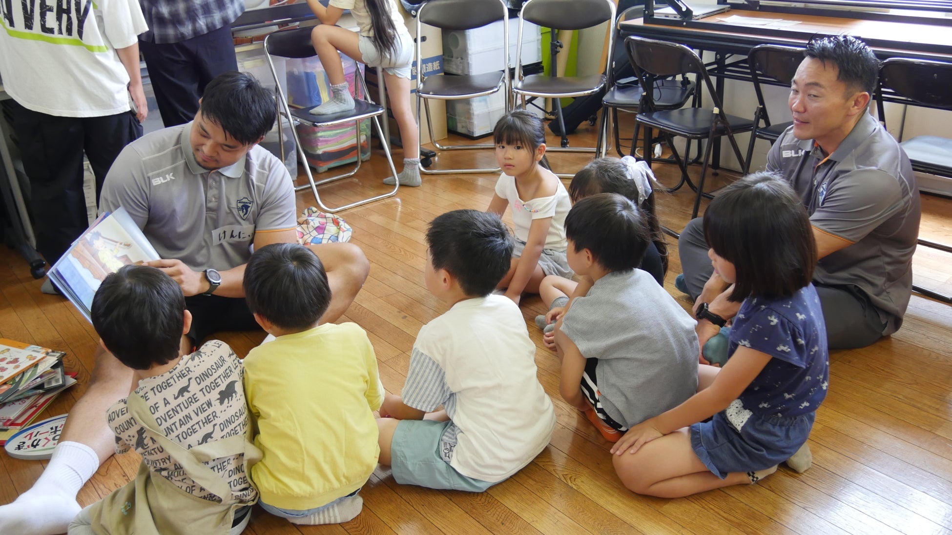 子どもたちは調理班と未就学児向けの遊び班に分かれ活動。山本選手は未就学児への絵本の読み聞かせを担当、体の大きな選手が小さな子どもたちに読み聞かせをする光景は、和やかな雰囲気を作り出した。