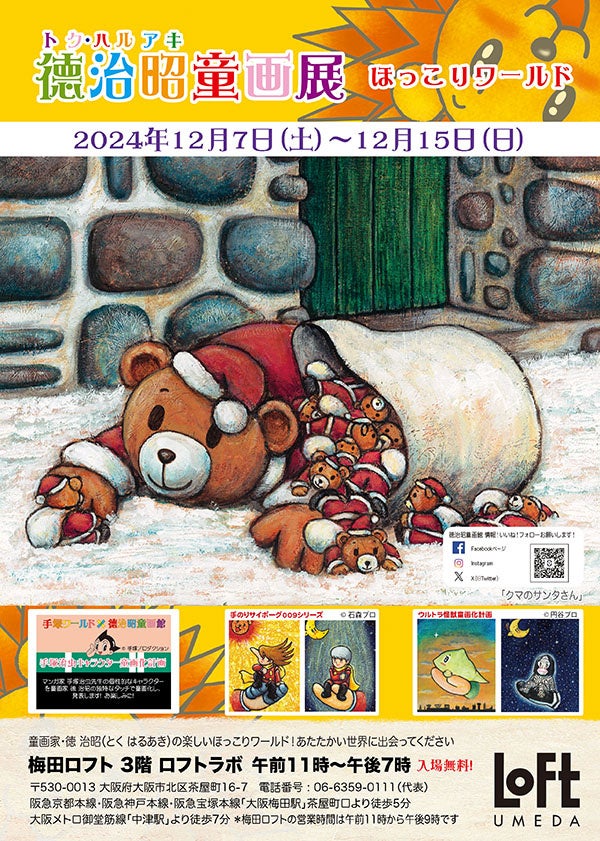 『徳治昭童画展ほっこりワールド』梅田ロフトで12月7日(土)より開催!梅田ロフトは2025年春に移転のため、同所での徳治昭童画展の開催は今回が最後になります。