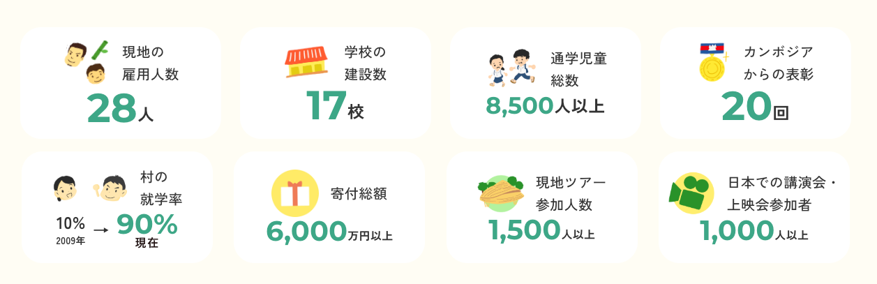 この表彰は、支援の規模や金額を競うものではありません。村に学びの場が生まれ、大人の仕事が生まれ、カンボジアの人たちが自分たちの手で未来をつくり始めている——