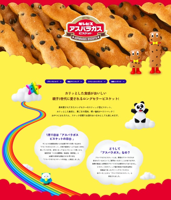 各商品ブランドページを新設し、その中に歴史や豆知識を掲載したほか、スペシャルコンテンツとして知育要素を取り入れた内容やコンセプトメッセージを盛り込みました。