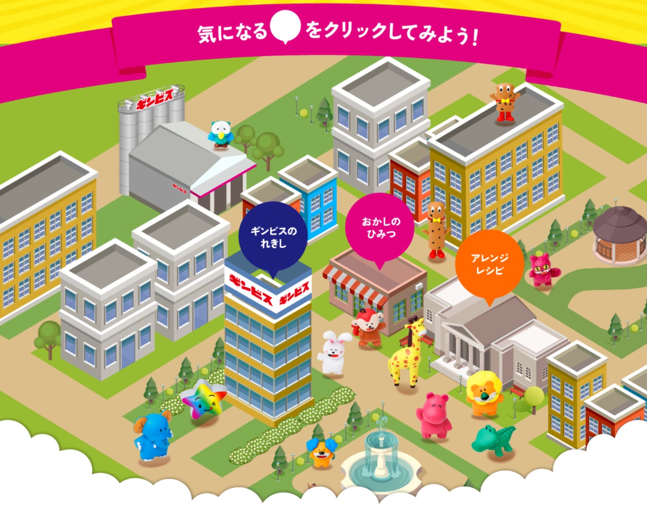 ギンビスのお菓子と同様に、サイトページ内に知育要素を取り入れながら、より深くギンビスやギンビスの商品について知っていただけるコンテンツを充実させました。