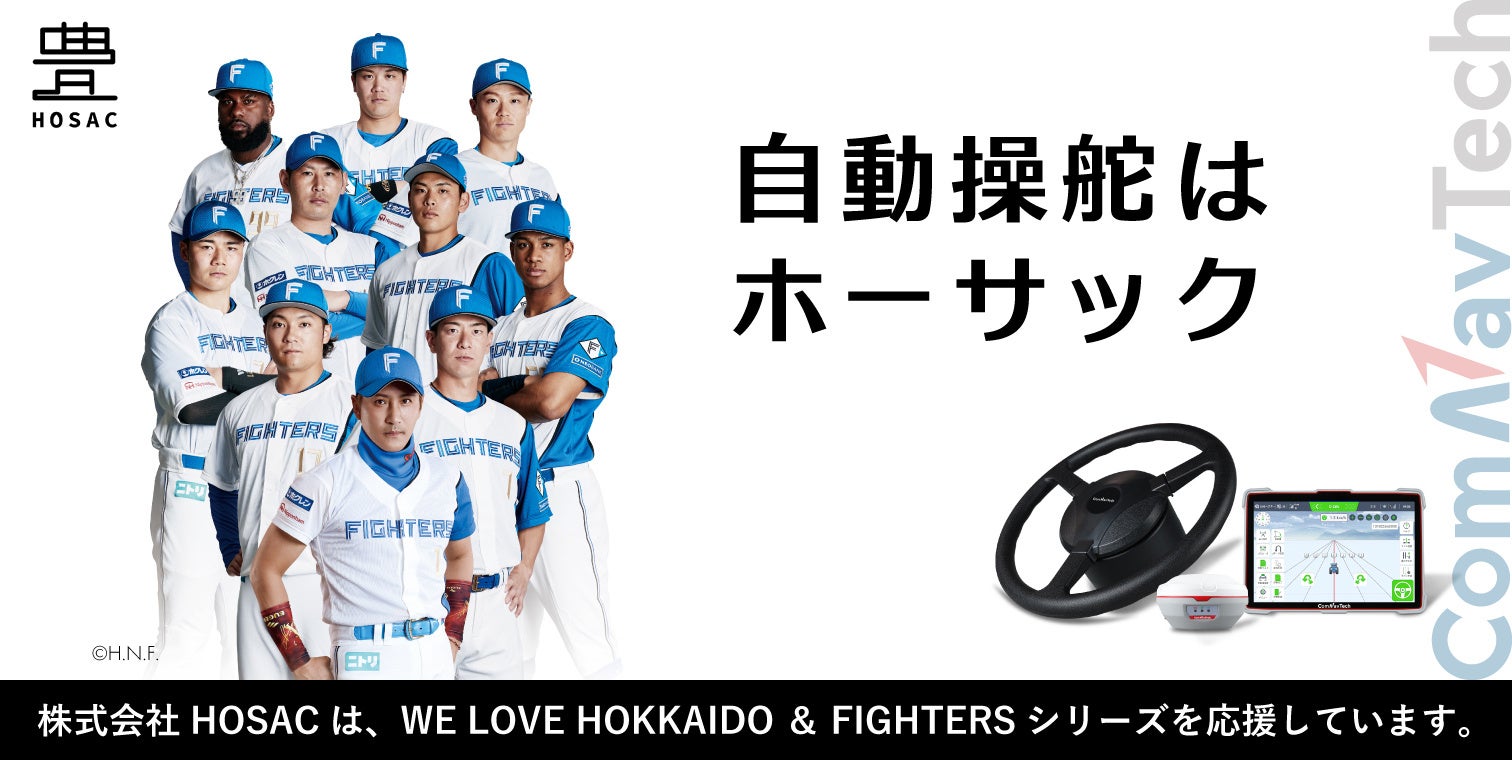 株式会社HOSACは、北海道の農業を支える技術と仕組みを提供することで、地域全体の活力を高めることを目指しています。私たちの提供する「HOSAC FREE RTK」は、現場の声に応える高精度・安定性・使いやすさを備えたRTKサービスとして、道内および全国の生産者の皆様に広くご活用いただいております。一方で、地域社会とのつながりを大切にする姿勢の一環として、「WE LOVE HOKKAIDO&FIGHTERSシリーズ」を応援しています。スポーツは、地域に元気や一体感を生み出す大切な要素です。HOSACはこれからも、農業を軸とした地域の持続的な発展に貢献しながら、地域に根ざした取り組みを応援することで、北海道の農業の未来を共に築いてまいります。選手たちの熱い試合を、ぜひエスコンフィールドHOKKAIDOでお楽しみください!