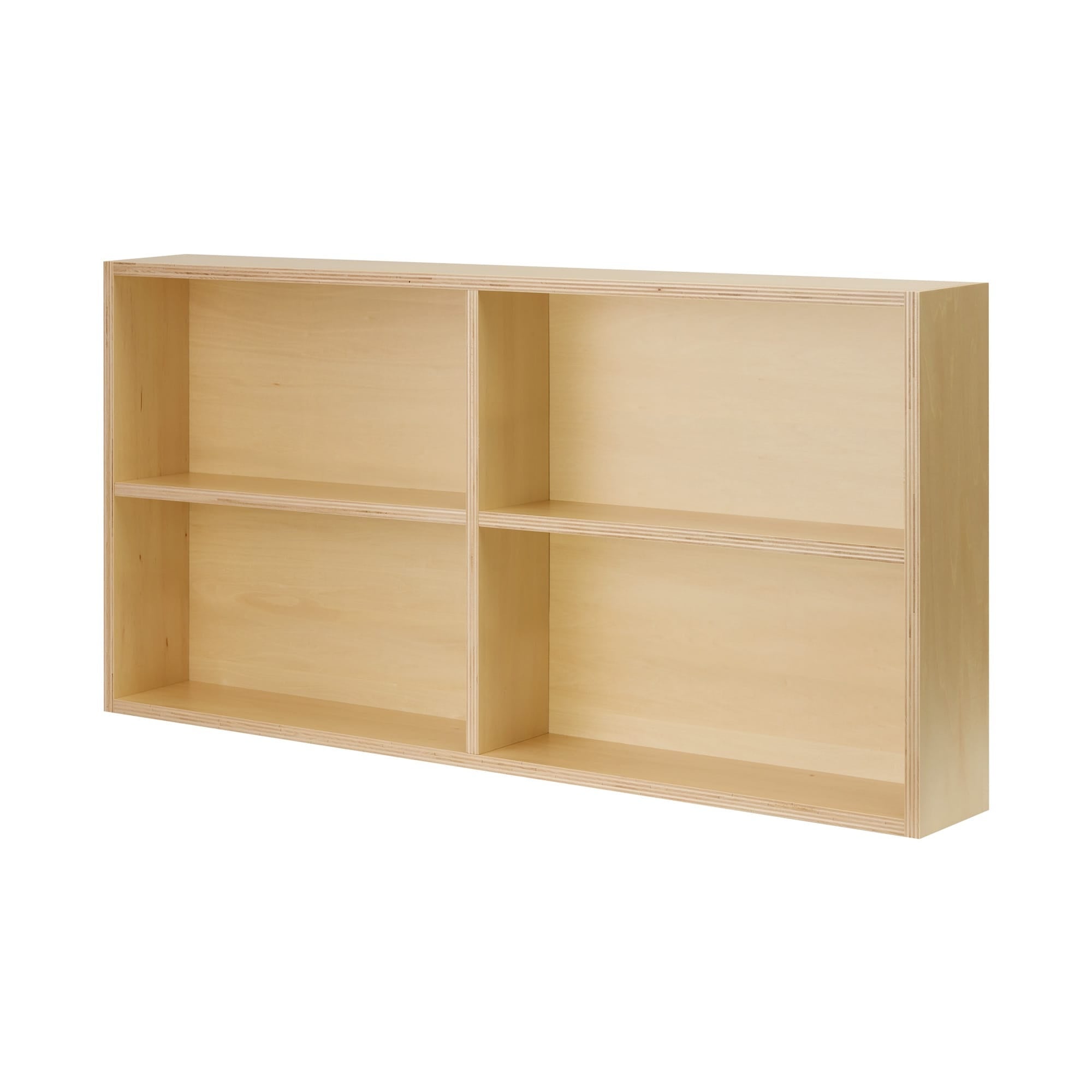ノートの罫線のように物が自然と整列する固定棚。奥行き14.5cmの浅さで、カップ、小皿、文庫本など、身の回りのアイテムがぴったりフィットします。