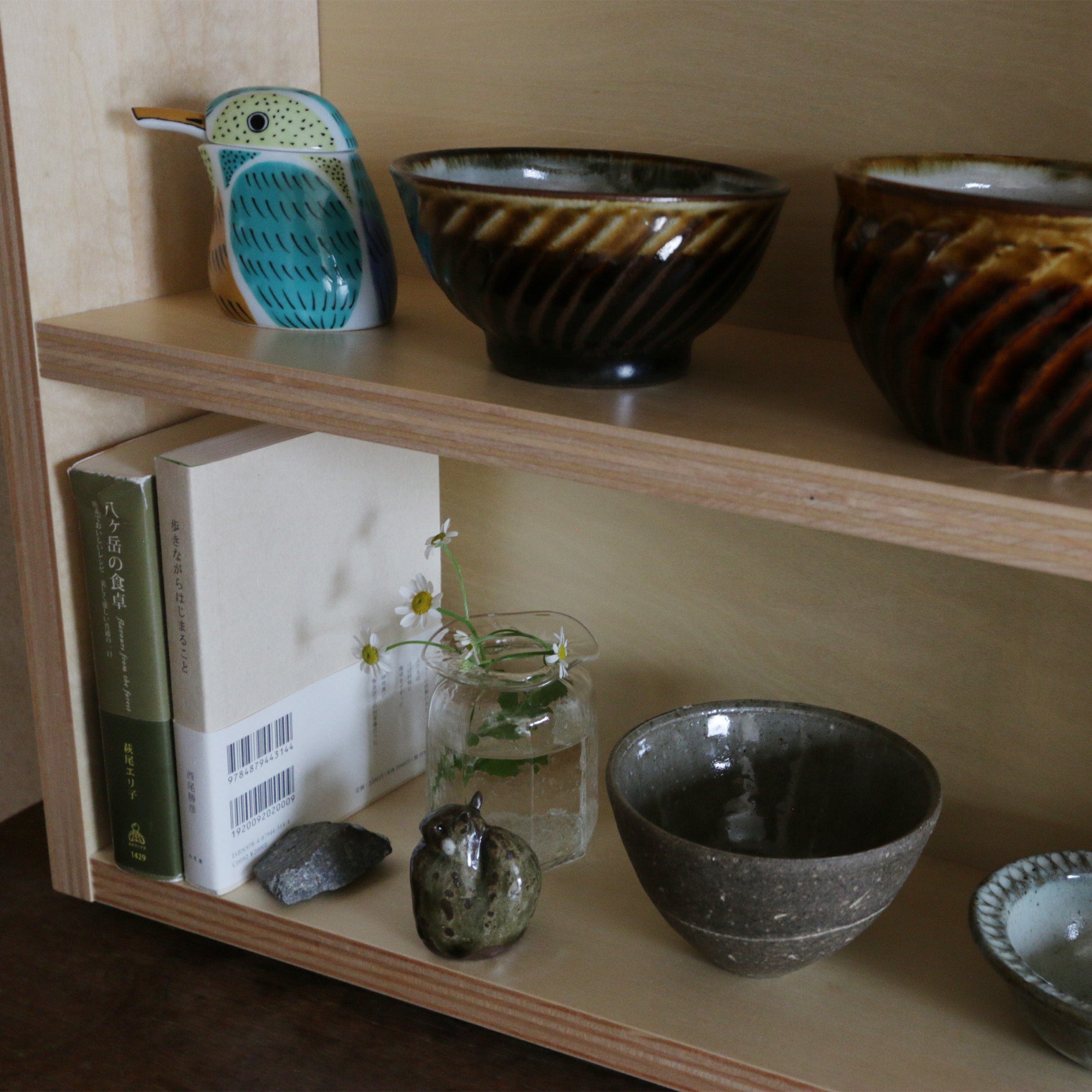 一般的な棚厚15mmよりも厚みのある板を採用。器や小皿を重ねても安定感あり。