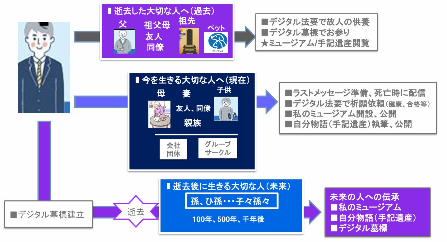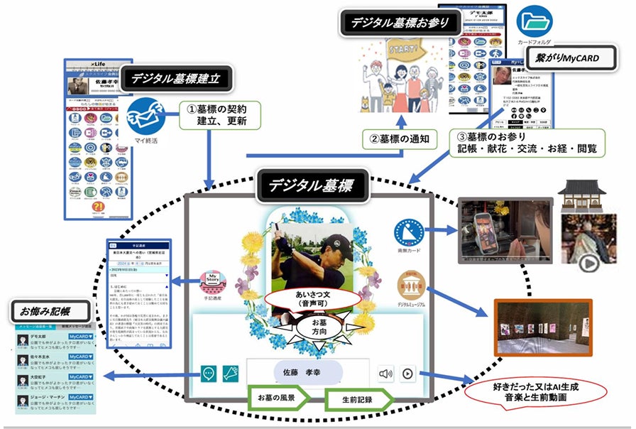 デジタル墓標は逝去後の未来ポータル、象徴として様々なデジタル情報と連係します。