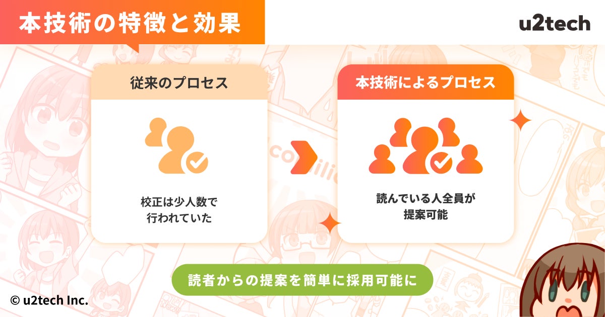 株式会社ユーツーテック(本社:東京都新宿区、代表取締役:皆川大樹、以下:ユーツーテック)は、デジタルコンテンツにおける誤字・脱字・誤訳などの誤り候補箇所をユーザーが指摘・提案し、投稿者がそれを反映できる仕組みに関して、日本国内で特許を取得いたしました(特許番号:第7651221号、登録日:2025年3月17日)。