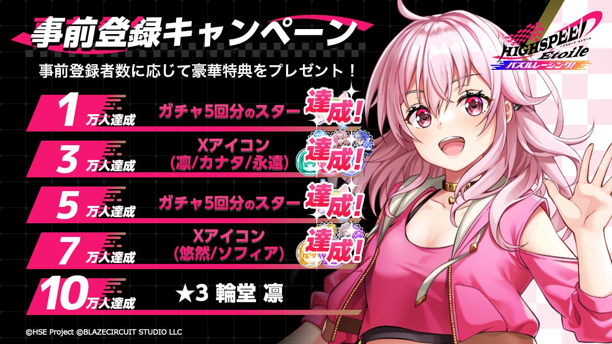 App Store / Google Playストア両アプリストアにて事前予約を受け付けており、事前登録者数が10万人を突破した際には「★3輪堂凛」が入手できますので、お見逃しなく事前登録をお願いします!10万人まであと少し、リリースを楽しみにお待ち下さい!