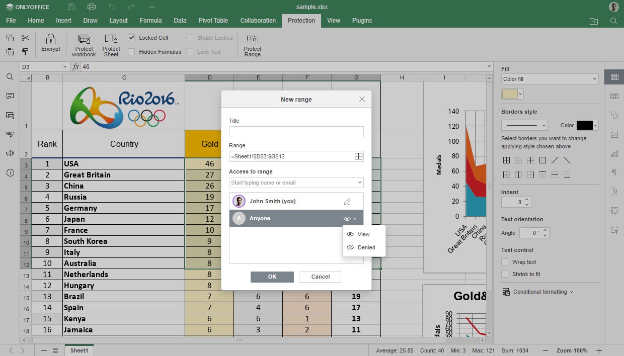 ONLYOFFICE Docs 8.1はスプレッドシートに複数の強化をもたらします。保護された範囲内のセルの表示を制限して、重要なデータを保護することが可能です。スプレッドシートでのコラボレーションは、バージョン履歴で変更されたセルが強調表示されることで、より快適になります。さらに、開発者はGETPIVOTDATAおよびIMPORTRANGE関数、カスタム関数挿入のヒント、およびワークブック間でシートをコピーまたは移動する機能を追加しました。