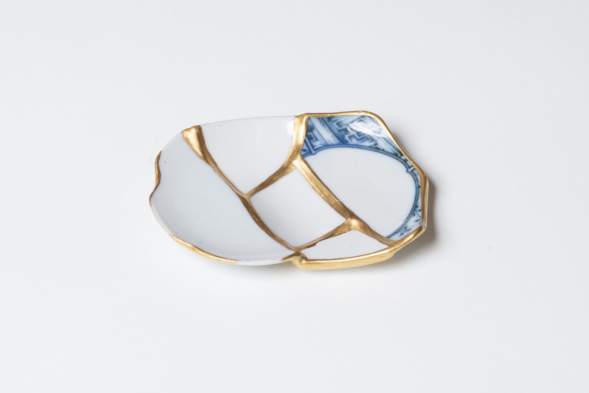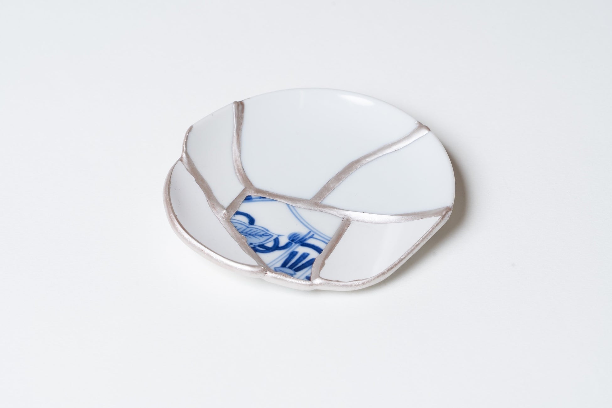 今回ミュージアムショップに展開する作品は、何かしらの理由で使用できないとされ、廃棄されかけた陶磁器片たちを融合させて生まれた作品です。もとに戻すわけではなく、また新たなものへと生まれ変わっていくそのプロセスは、能登半島地震に向き合いながら前進していく地域の皆さんの姿とも重なるかもしれません。特に、割れた部分を無いことにして隠すわけではなく、あえて見せていくという、侘び寂びにも通じる思想。割れたところをむしろ美しいと愛でる心が日本にはあると感じます。欠けた部分には漆を何層にも重ねて柔らかく仕上げています。ぜひ、手に馴染む感触を楽しんでください。