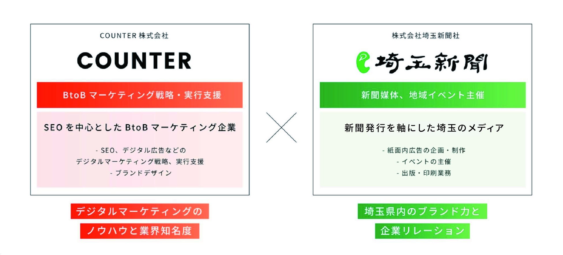 COUNTER株式会社(埼玉県越谷市、代表取締役:宮田 和也)は、株式会社埼玉新聞社(埼玉県さいたま市、代表取締役社長:関根 正昌)と業務提携を行い、デジタルマーケティングサービスの提供を開始します。