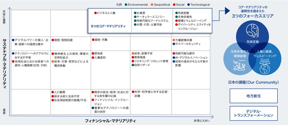 当社では、コーポレート・メッセージ「投資の力で未来をはぐくむ」を掲げ、中長期に亘るお客さまの資産形成と企業の健全な成長、そしてサステナブルで豊かな社会の実現を支えていくことを目指しています。コーポレート・メッセージの制定以来、「未来をはぐくむ」うえで障壁となっているグローバルな社会・環境の重要な課題を特定し、マテリアリティ・マップとして可視化することで、資産運用へ反映させてきました。