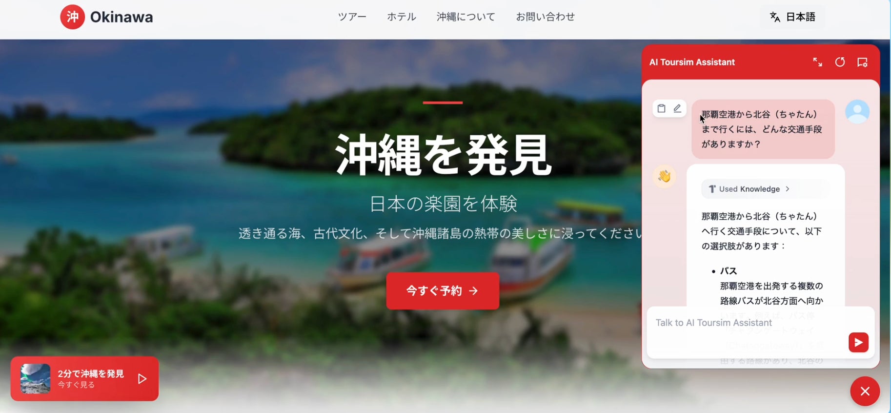 『ALL IN ONE 観光AI情報センター』は、Miichisoftが沖縄の旅行事業者向けに特別設計した、リアルタイム稼働のデジタル旅行アシスタントです。