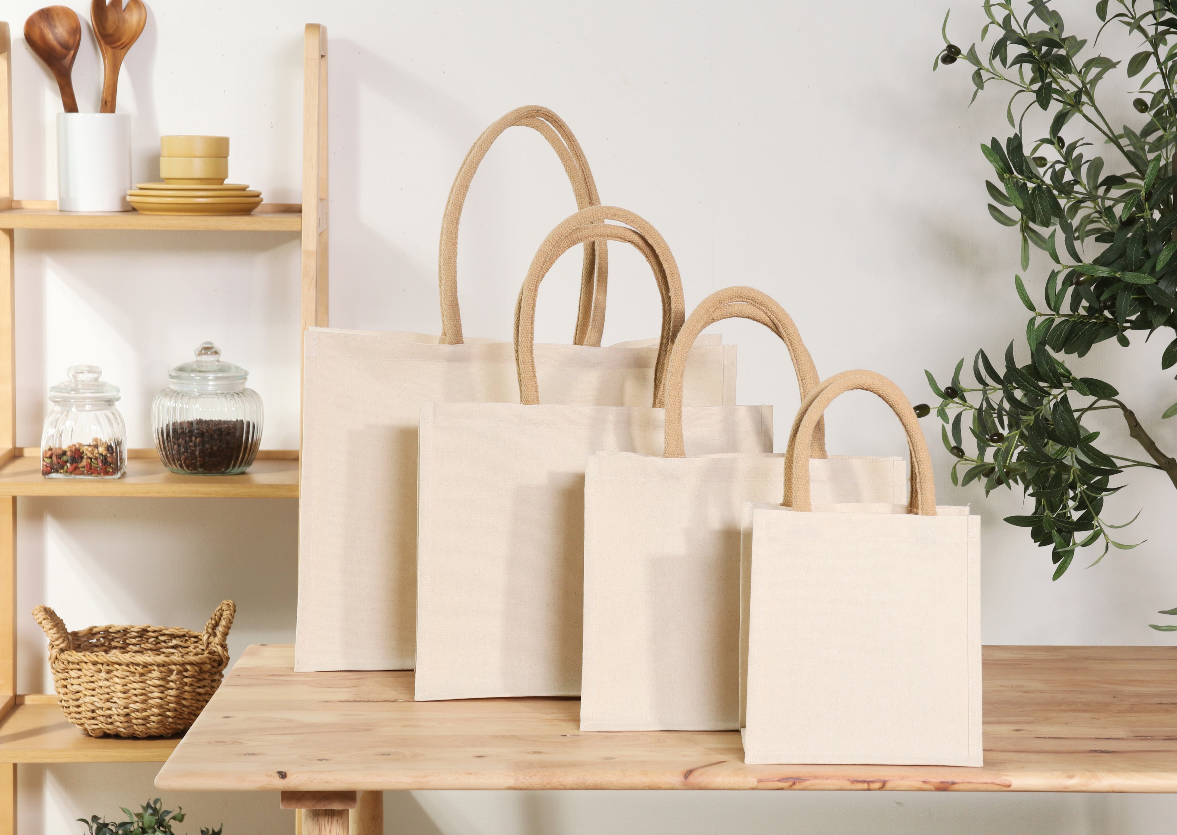 「ポケット収納&ボタン付き」でより使いやすくなったジュートバッグを4サイズ展開で発売