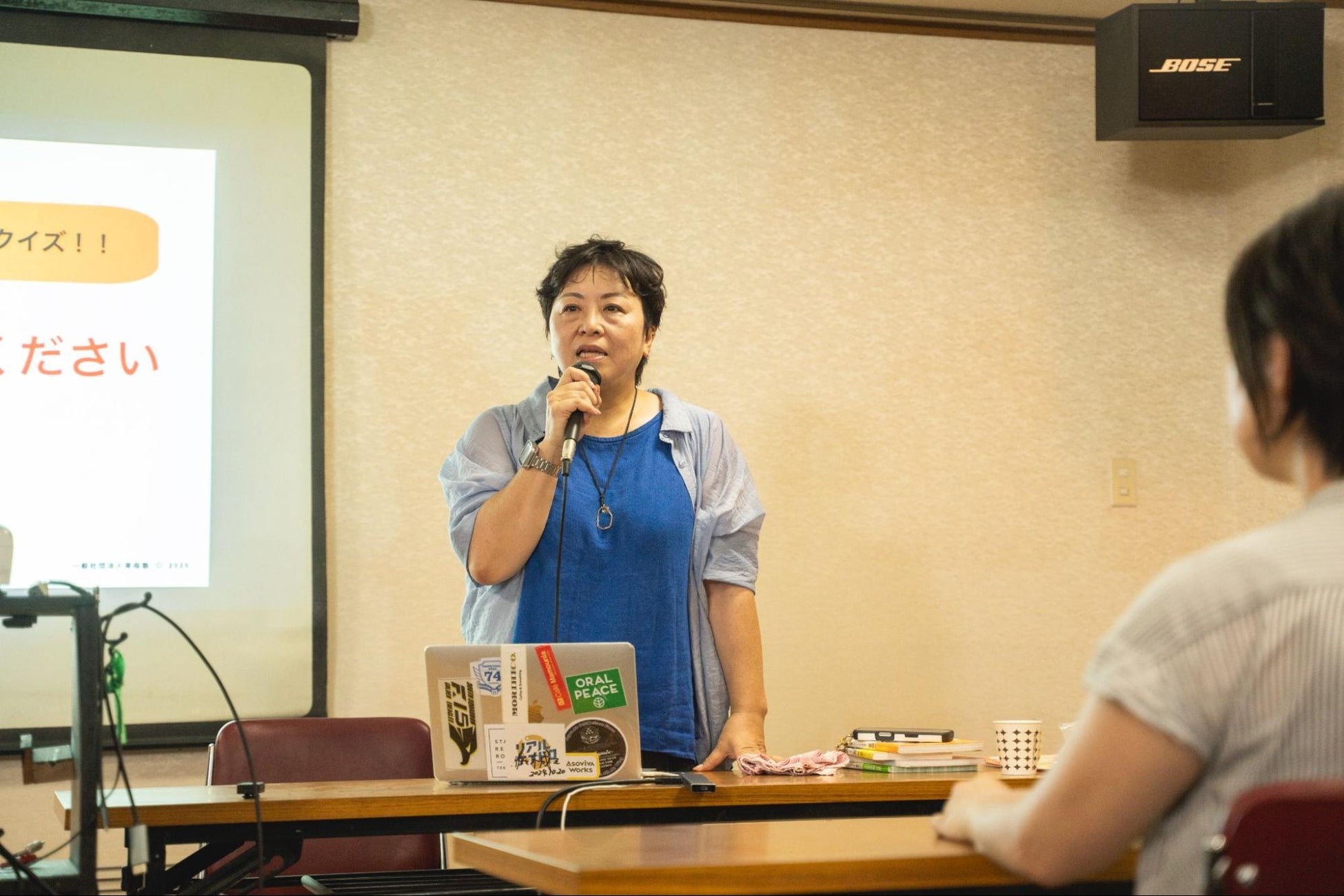ワークショップと合わせて、本イベントでは辻直美先生による講演が実施されました。辻先生はレスキューナースとして30年近く活躍されており、災害時の心構えや「防災のテクニック」をレクチャーいただきました。