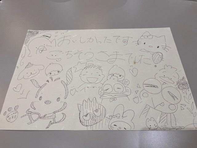 片付けをしていると離席した参加者のテーブルに素敵なお手紙が残されていました。紙製のランチョンマットの裏に気持ちを描いてくれていました。このような繋がりを大切にしていきたいと思います。
