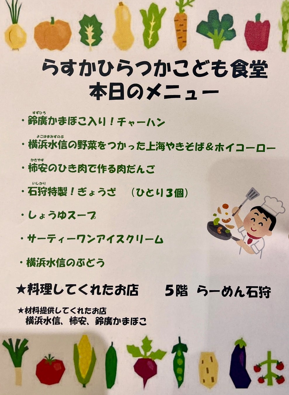 フードバンク湘南はラスカ平塚店と今後も協力して、未来ある子どもたちに少しでも多くの経験や体験をしてもらうためこの子ども食堂を続けていきます。