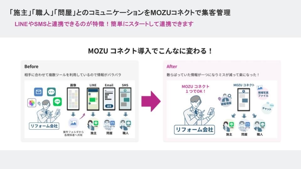 〜MOZUオーダー会員約2万社の現場の声を形に。施主・職人とのコミュニケーション煩雑化を解消。図面・写真・ファイル共有も一つに。LINE連携可能な現場管理アプリで中小リフォーム会社の建築DXを後押し〜