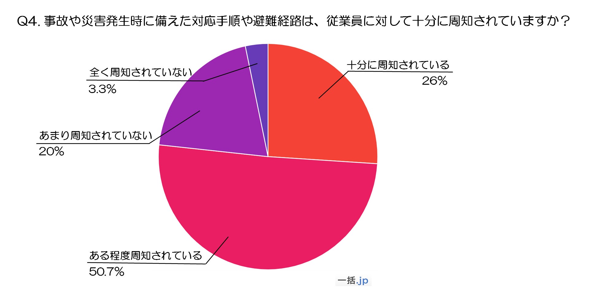 調査結果④ 事故や災害発生時に備えた対応手順や避難経路は、従業員に対して十分に周知されていますか?