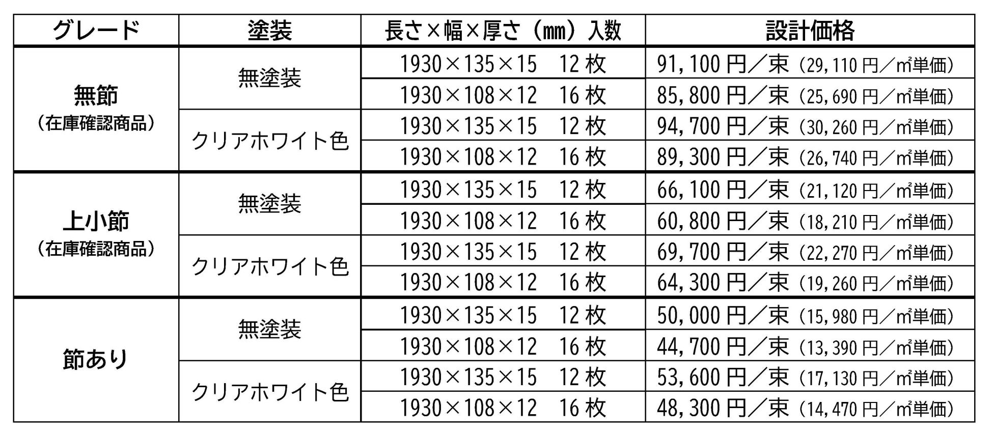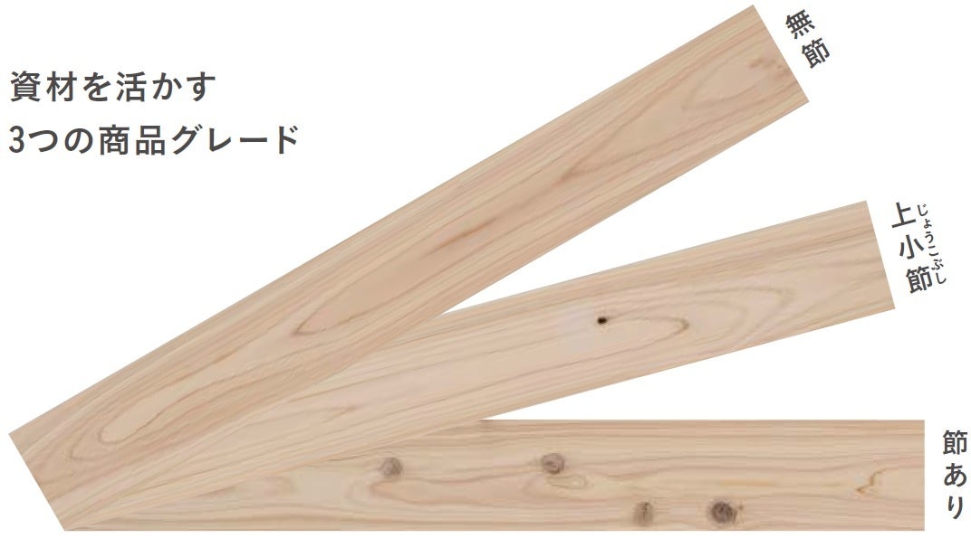 「節の無い、すっきりとした木目を愉しめるグレード」