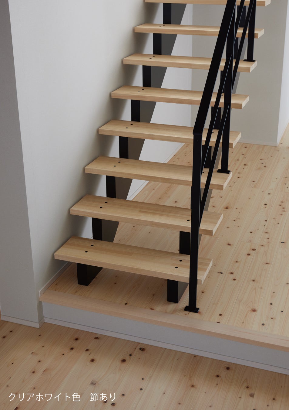 一般的なクリア塗装品と比較して、素地の色合いをしっかりと楽しんでいただける塗装仕上げ(クリアホワイト色)を施しています。お手入れのしやすさはそのままに、空間にすっとなじむ自然な風合いです。