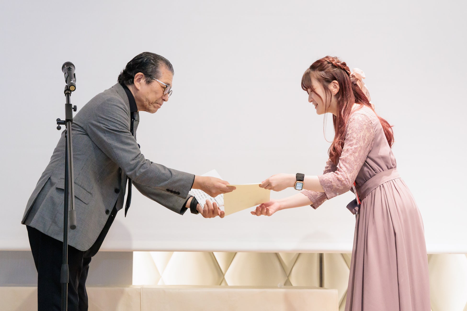「この度は、女性起業チャレンジ大賞 第10回グランプリという名誉ある賞をいただき、心より御礼申し上げます。私は中学1年でプログラミングと出会い、人生の軸となる「やり抜く力」を身につけることができました。一方で、理系分野における女性の参入の難しさを肌で感じ、もっと多くの女の子が「私は理系だ」と自信を持てる機会を届けたいと思い、株式会社Griteenを起業いたしました。学生が立ち上げたまだ小さな企業ですが、この受賞を励みに、今後とも女の子たちが理系分野で活躍できるような環境づくりに尽力してまいります。」