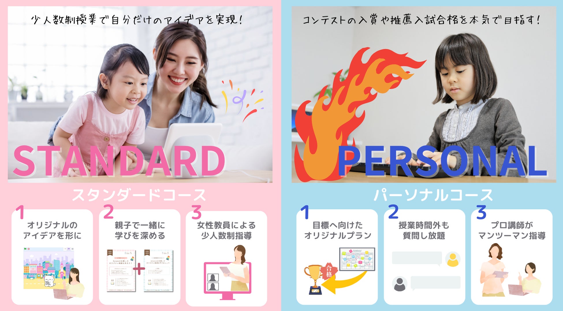 コースはスタンダードコース・パーソナルコースの2つございます。お子様の目標やスケジュールに合わせて柔軟授業を受講することができます。