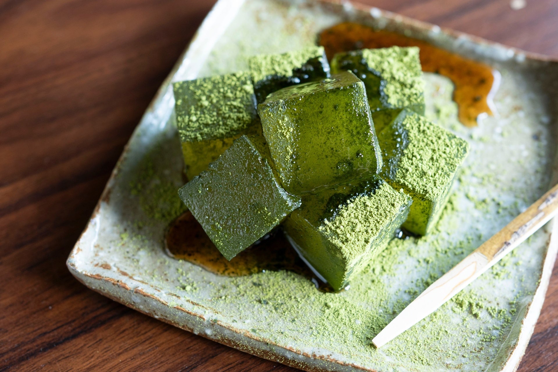本蕨粉のもっちり食感と、抹茶の香りを楽しむ お茶屋仕立ての和スイーツ