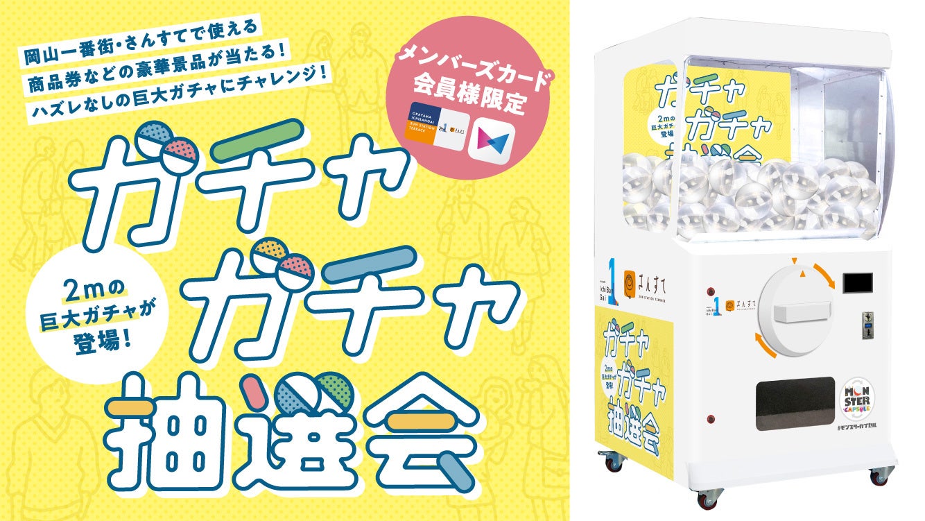 高さ2.0mの巨大ガチャ「モンスターカプセル」を回して、岡山一番街・さんすて岡山で使える商品券など豪華景品をGETしよう!