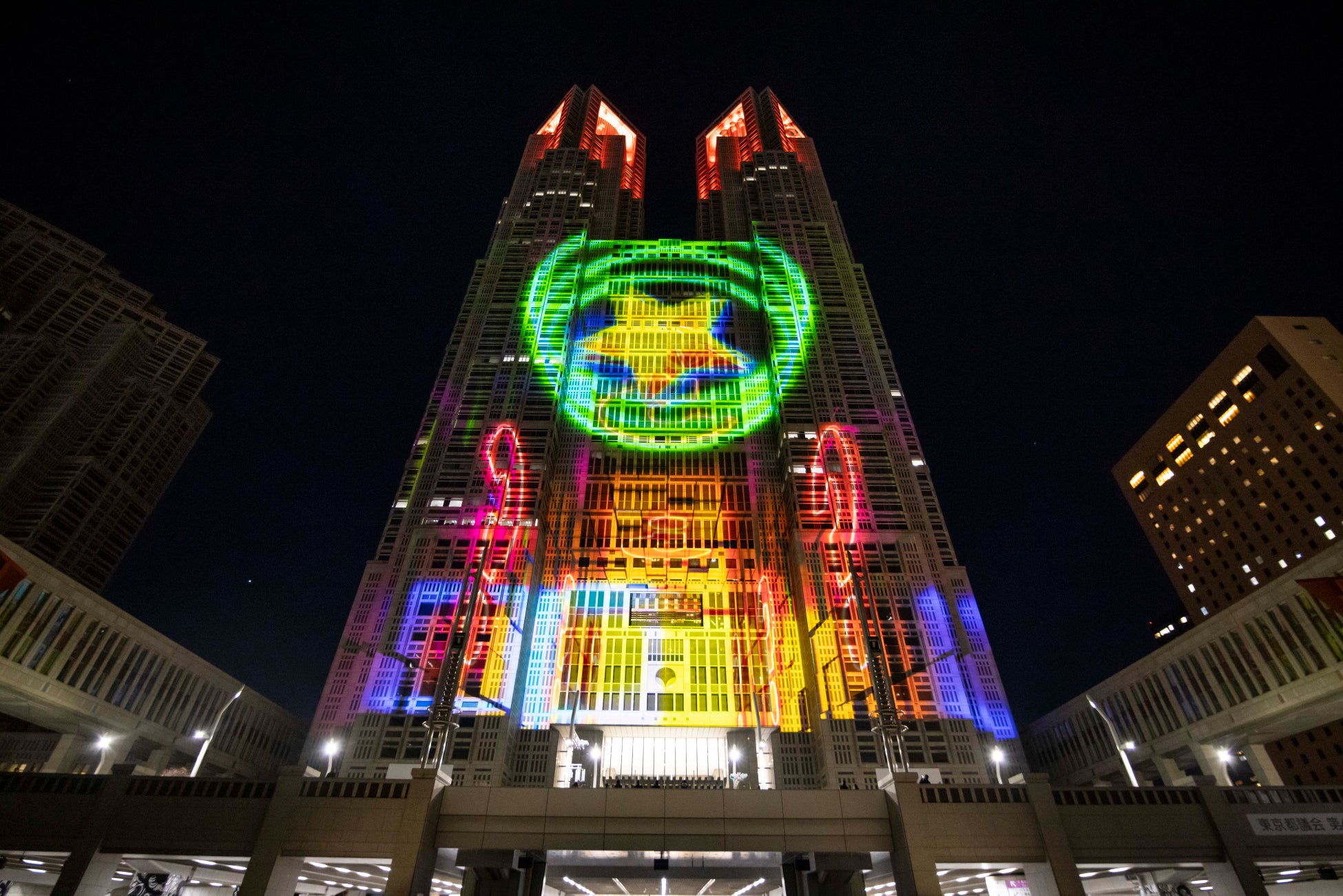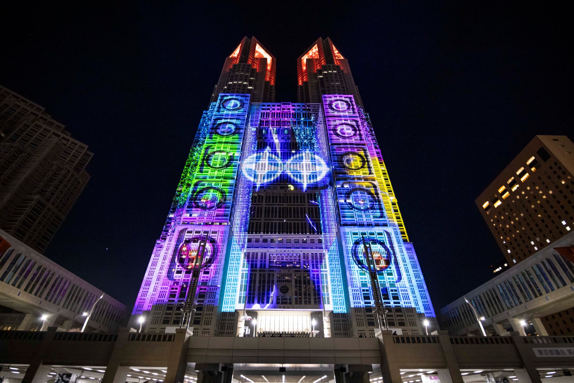 東京都では、夜間の観光振興の活性化に向けて、東京の夜を彩る新たな観光資源を作るため、代表的なランドマークである都庁第一本庁舎をキャンバスに光と音で多彩なアートを表現するプロジェクションマッピングを通年で上映しており、これまでに約45万人の方にご来場いただいております。